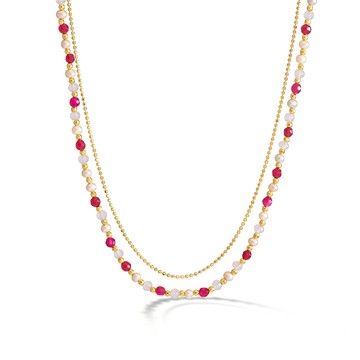 #YellowGoldVermeil The perfect addition to your gemstone collection, our Pink Blossom Orissa necklace is a colourful combination of faceted rose quartz, cherry quartz gemstone beads and pink freshwater pearls. The gemstones are complemented by sparkling sterling silver beads and sterling silver chain with a radiant yellow gold vermeil finish. The necklace is complete with our signature lobster catch. Pair with our matching Pink Blossom Orissa Bracelet. Gemstone sizes: 3-4mm #SterlingSilver The perfect addition to your gemstone collection, our Pink Blossom Orissa necklace is a colourful combination of faceted rose quartz, cherry quartz gemstone beads and pink freshwater pearls. The gemstones are complemented by sparkling sterling silver beads and sterling silver chain. The necklace is finished with our signature lobster catch. Pair with our matching Pink Blossom Orissa Bracelet. Gemstone sizes: 3-4mm