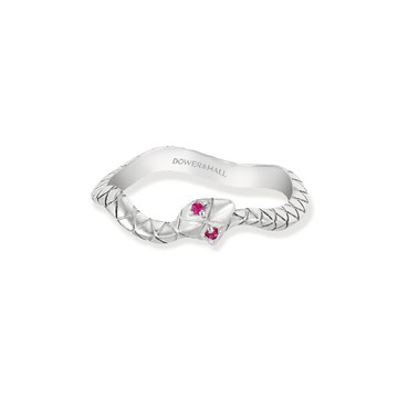 #SterlingSilver A new addition to our Twinkle collection, this 3mm wide sterling silver snake ring curls around your finger and is engraved with 'Fearless' on the inside. A symbol of rejuvenation, power and strength, the snake's eyes are set with radiant rubies. Handmade for you, our Twinkle Rings come in plenty of options for you to build your own styled stack. Our 'Affirmation' styles recognise the unique journeys that we make through life and are designed to inspire you each day. Available in sizes J-P. Other sizes can be handmade at an additional cost - please enquire. Other colours of stones for the eyes may also be possible - please enquire.