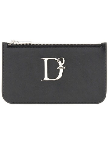 Dior MONTAIGNE 藍色緹花布翻蓋拉鍊卡片/零錢包