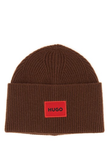 LACOSTE 鱷魚徽標補丁紅色針織反摺羊毛帽