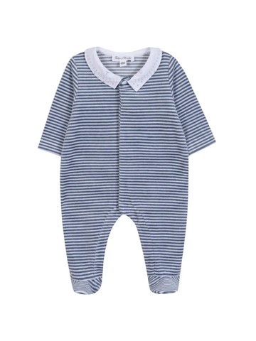 akachan honpo - 長袖兔裝-先染橫紋-深藍色