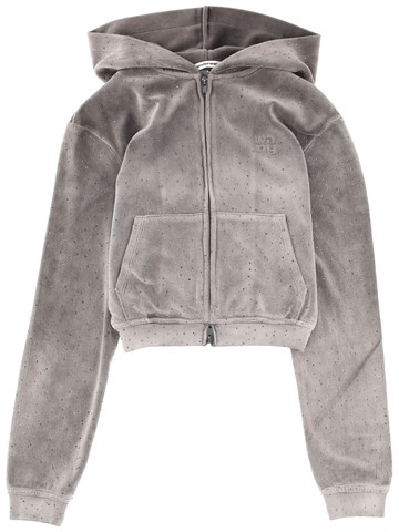alexanderwang 水晶水鑽裝飾抽繩短款拉鍊連帽衫