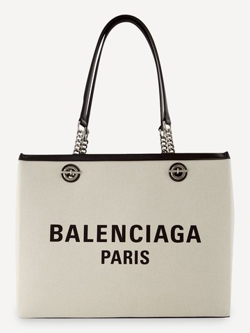 BALENCIAGA Duty Free 中型 字母印花帆布肩背托特包(米白色)