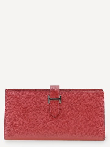 【二手名牌BRAND OFF】HERMES 愛馬仕 唇膏粉 Chevre山羊皮 Bearn 銀扣 兩折短夾 C刻 銀扣