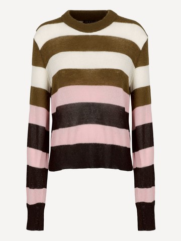 5th STREET|女裝|條紋不收邊針長上衣|綠色