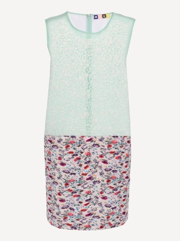 【買2送1】HS 薄荷色小香風拼接短洋裝 天空藍