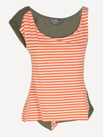 韓系慵懶風斜肩條紋短袖t恤女夏季新款設計感辣妹收腰露臍短上衣
