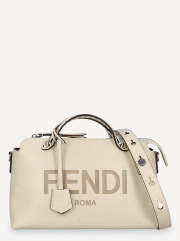 FENDI 新款米白刺繡FENDI標誌帆布ROMA手提/肩背包 (中款)