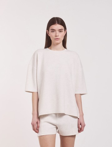 Relaxed, refined, and consciously made, this oversized sweatshirt tee is crafted from soft, sustainable viscose with a beautifully structured drape. Designed with dropped shoulders, wide sleeves, and subtle side splits, it's the perfect blend of comfort and modern minimalism. Pair it with matching shorts for effortless coordination, or style it with jeans for an everyday look.