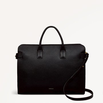 This is how Radley does smart heritage style. With grained leather belted tabs and side panelling. The Rathbone laptop bag features all three while the spacious faux suede-lined interior has room for a laptop adding all the practicality you need for any busy schedule. - Made with grained leather - V-shaped side panels and stitching - Adjustable belted tabs - Padded grab handles - Detachable cross body strap - Zip-top fastening with branded metal puller - Bonded faux suede lining - Interior slip pocket - Fits 13" laptop - Foil logo - Comes with a dust bag