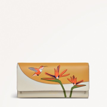 A snapshot of the nature weve spotted on our summer travels this matinee purse is detailed with exotic Birds of Paradise. Craft techniques such as appliqué inlay panelling and colour-embossing bring them to life across this smooth leather shape. - Smooth leather - Inlaid panels appliqué and screen prints - Colour-embossed bird detail - Flap with press stud fastening - Two compartments - 12 card slots - Two slip pockets - Zipped pocket with branded metal puller - Flapover coin pocket - Foil logo - Comes with a dust bag