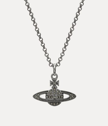 The house's orb silhouette is synonymous with Vivienne's vision of taking tradition into the future. The Man. Mini Bas Relief Orb Pendant necklace receives the orb shape, adorned with black crystal details and gunmetal-tone plating.