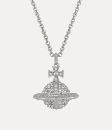 Our Mayfair Large Orb pendant necklace has been refreshed with silver-tone plating and encrusted with white gemstones. Pyramid-stud accents run throughout the design, symbolising non-conformity and honoring the house's iconic punk aesthetic. This statement piece features our signature orb motif, embodying Vivienne's vision of redefining tradition for the future.