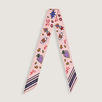 Hermes 愛馬仕Odyssey未來世界 Twilly絲巾(淺粉/藍)