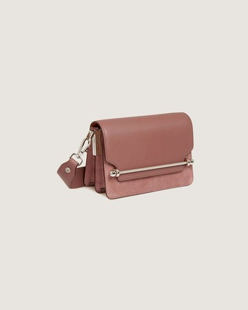 Our best-selling silhouette is reimagined into the East/West Mini - an effortlessly chic mini bag with interchangeable straps, designed to elevate your everyday look. Featuring our signature Strathberry music bar as a funtional closure, this timeless silhouette boasts sophisticated details and adds a touch of understated elegance to any outfit. Taking you seamlessly from day to evening, this bag can be worn with the lightweight chain strap or the comfortable leather strap, allowing the style to be carried as both a shoulder bag and crossbody bag for hands-free ease. Our complimentary, two-tone palette represents the lively colour of flora within the forest. Our Italian Calf Split Suede injects organic textures found in Scotlands unspoiled outdoors.