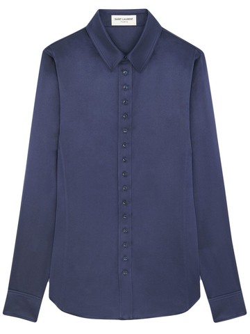 天絲金釦長袖休閒襯衫/水藍色 | 5623780772