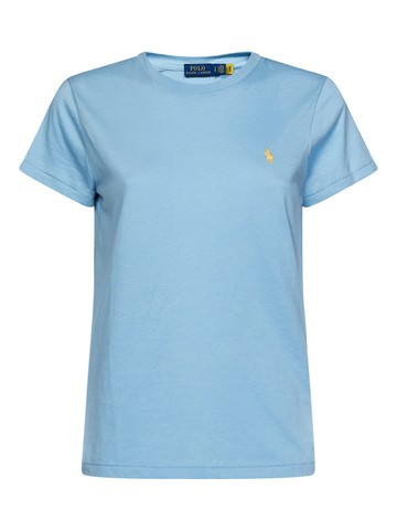 Ribbed crewneck; Short sleeves Contrasting Pony embroidery on the chest Straight hem Straight cut; Hip length Light blue 100% Cotton Made in Vietnam The item in the photo corresponds to size S. Mannequin size: 42 IT. Mannequin Measurements: Height 1.75cm, Bust/Chest 85cm, Waist 65cm, Shoulder 44cm, Neck 36cm, Arm Length 57cm, Wrist Circumference 16cm, Chest Level 26cm, Knee Level 66cm