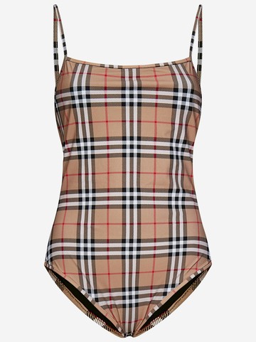 Swimsuit Thin straps, round neckline on the back All-over vintage check motif Beige 74% Polyamide, 26% Elastane Made in Portugal Item in photo corresponds to size S. Mannequin size: 42 IT. Mannequin measurements: Height 1.75cm, Bust / Chest 85cm, Waist 65cm, Shoulder 44cm, Neck 36cm, Arm length 57cm, Wrist circumference 16cm, Chest level 26cm, Knee level 66cm