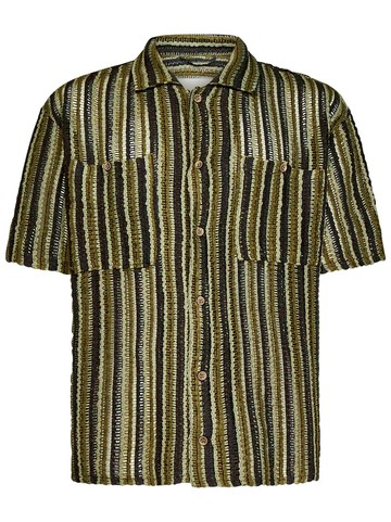 Front closure with buttons Open collar; Short sleeves Patch pockets with button on the chest All-over contrasting striped pattern Relax fit Green 96% Acrylic, 4% Polyester Made in Korea The item in the photo corresponds to size M. Mannequin size: 48 IT. Mannequin Measurements: Height 1.85cm, Bust/Chest 95cm, Waist 75cm, Shoulder 44cm, Neck 43cm, Pelvis 93cm, Arm Length 62cm, Chest Level 26cm, Knee Level 63cm, Wrist Circumference 20cm