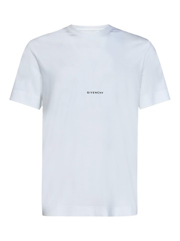 Ribbed crewneck; Short sleeves Contrasting GIVENCHY signature printed at chest Straight hem Slim fit White color 100% Cotton Made in Portugal Item in photo corresponds to a M. Mannequin size: 48 IT. Mannequin measures: Height 1.85 cm, Bust/Breast 94cm, Waist 75cm, Shoulder 44cm, Neck 43cm, Hip Bone 93cm, Arm lenght 62cm, Breast level 26cm, Knee level 63cm, Wrist circumference 20cm