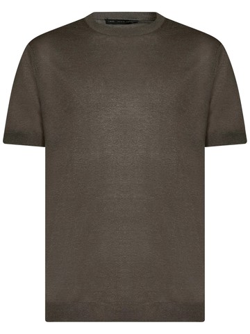 Ribbed crewneck; Short sleeves Ribbed cuffs and bottom Lightweight silk and linen sweater Regular fit Colour: elephant grey 55% Silk, 45% Linen Made in China The item in the photo corresponds to size 3. Mannequin size: 48 IT. Mannequin Measurements: Height 1.85cm, Bust/Chest 95cm, Waist 75cm, Shoulder 44cm, Neck 43cm, Pelvis 93cm, Arm Length 62cm, Chest Level 26cm, Knee Level 63cm, Wrist Circumference 20cm