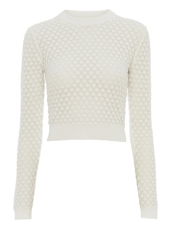 Pullover corto in maglia di cotone pointelle-M