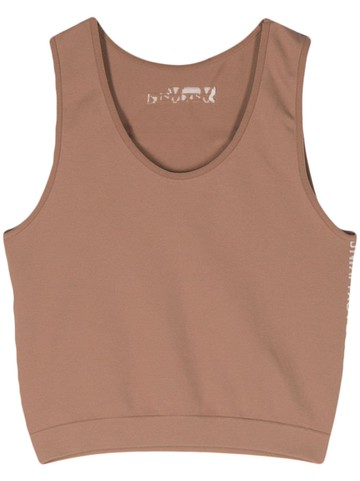 off-white sleeveless top with logo