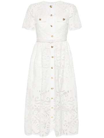 Abito midi con bottoni in pizzo di cotone bianco-10