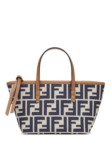 FENDI Roll FF Logo 緹花布迷你手提/斜背二用包(淺藍色)