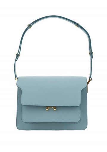 Trunk Shoulder Bag Calfskin Trunk Shoulder Bag by Marni, adjustable shoulder strap, top flap with snap fastening, accordion design, gold-plated metal components, inside zip pocket with internal logo, contrasting embroidered logo on the inside, flap closure and metal piercing snap fastening.