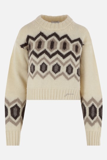 GANNI Chunky Graphic organic wool cropped pullover Woman