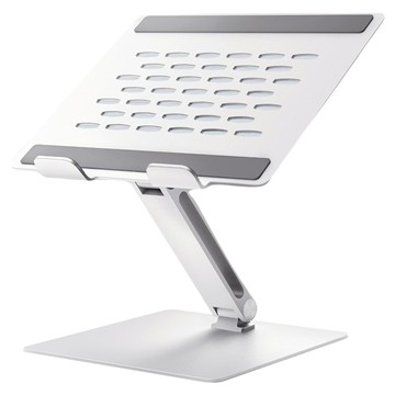 Home Planet可調節鋁合金筆電增高架採用堅固耐用的鋁合金材質,提供穩定的支撐,並具備良好的散熱效果,有效降低筆電溫度。寬版設計可放置最大17吋的筆記型電腦,適用於各種尺寸的裝置。雙關節設計可自由調整高度和角度,讓使用者找到最符合人體工學的舒適姿勢,減輕頸椎負擔。底部的防滑矽膠墊,能確保支架穩固不滑動,保護您的桌面。簡約的淺銀色外觀,更增添了時尚感。