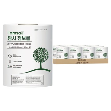 Tamsaa 大型捲筒衛生紙 100%原生紙漿 柔軟細緻 200m 16捲 1盒