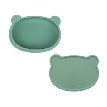 MODU'I BLUEMAMA 兒童餐具套組 小熊餐盤 + 蓋子 1組 綠豆色