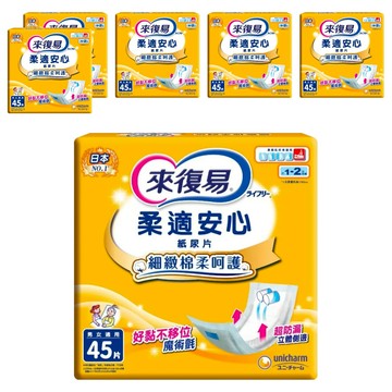 來復易 柔適安心尿片 男女適用 好黏不移位 細緻棉柔呵護 49 x 22.5cm 45片 6包
