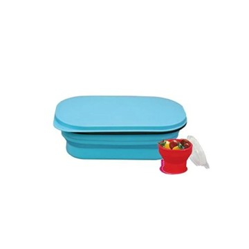 Lexngo 可折疊矽膠午餐組 580ml+80ml 耐熱110°C 小 藍色 1組