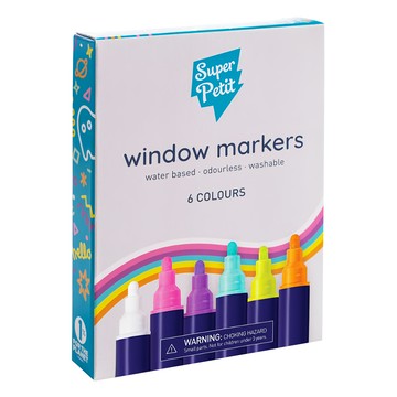 Super Petit 玻璃彩繪擦擦筆 6色套裝 無毒墨水 易清潔擦拭 6色 1盒