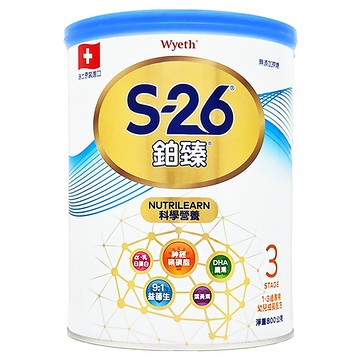 Wyeth 惠氏 S-26 鉑臻水解幼兒成長配方 3號 含有DHA 葉黃素 膽素成分 幫助消化 維持健康 成長無憂 800g 1罐