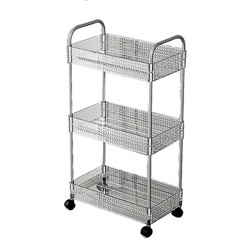 FAmILyLIFE 生活 輕奢鑽紋附輪夾縫置物架 加大款 3層 36.7 x 21 x 69.5cm 1750g 銀色