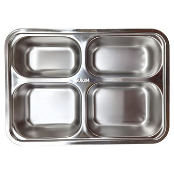 優得 304輕食餐盤4格附蓋 台灣製造 學校共食團膳使用 銀色 22 x 28 x 4cm 1個