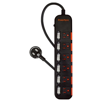 PowerSync 群加 6開6插斜面開關防雷擊抗搖擺延長線 3孔 TPS366BN0018 1.8m 黑色 1個