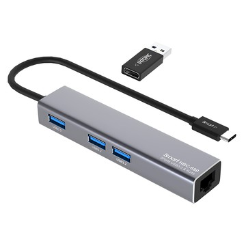 INTOPIC 廣鼎 USB3.2&RJ45鋁合金集線器 3孔USB3.2最高5Gbps傳輸速度 1Gbps高速有線網卡 附有USB-A轉接頭 HBC-680 1個