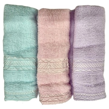 純棉緞檔毛巾3件組 33 x 74cm 225g 藍色 + 粉色 + 紫色 1組