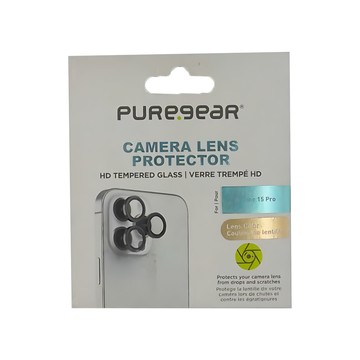 PURe.geaR 普格爾 藍寶石金屬框鏡頭保護貼 HD鋼化玻璃防刮保護貼 - 適用於 iPhone 15 Pro (三入) 1組