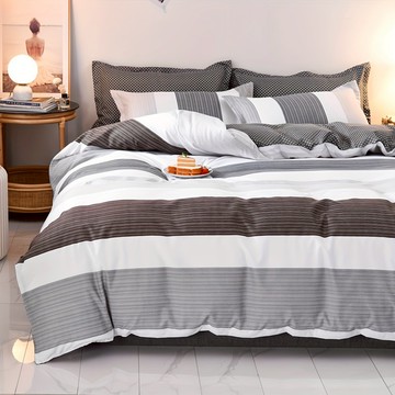 無印同款 日式全棉清新細條紋水洗棉床包組 純棉簡約床包床單被套被套枕頭套單人雙人加大100%精梳棉床上用品