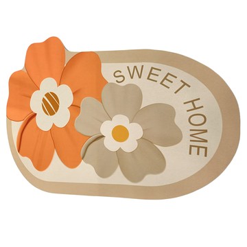 iSFun 清新風格 硅藻泥地墊 浴室吸水速乾防滑地墊 花卉 卡其色 80 x 50cm