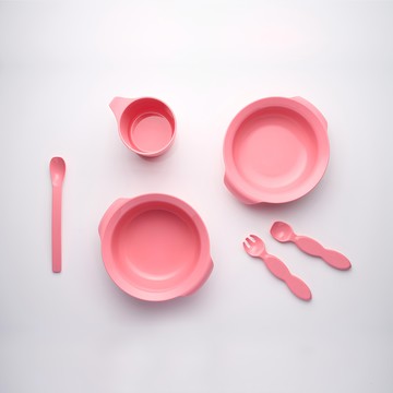 SIMPLA 玉米田嬰童餐具6件組 - 天然聚乳酸PLA材質 台灣設計製造 適用年齡5個月以上 湯匙 + 叉子 + 加長餵食匙 + 學習杯 + 淺碗 + 深碗 淺紅色 湯匙 + 叉子 + 加長餵食匙 + 學習杯 + 淺碗 + 深碗 1組