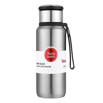 316不鏽鋼大容量保溫杯 New bold Stainless Steel Bottle 獨立茶倉 防刮耐磨 銀色 1個 1L