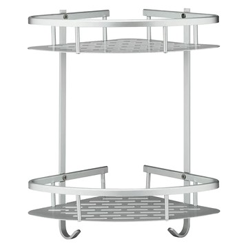 雙手萬能 太空鋁雙層轉角架 免釘免鑽 瀝水防腐 浴室廚房收納 銀色 1個