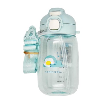 PUKU 藍色企鵝 圓圓直飲吸管揹帶兩用水壺 550ml Tritan材質 藍色 1個